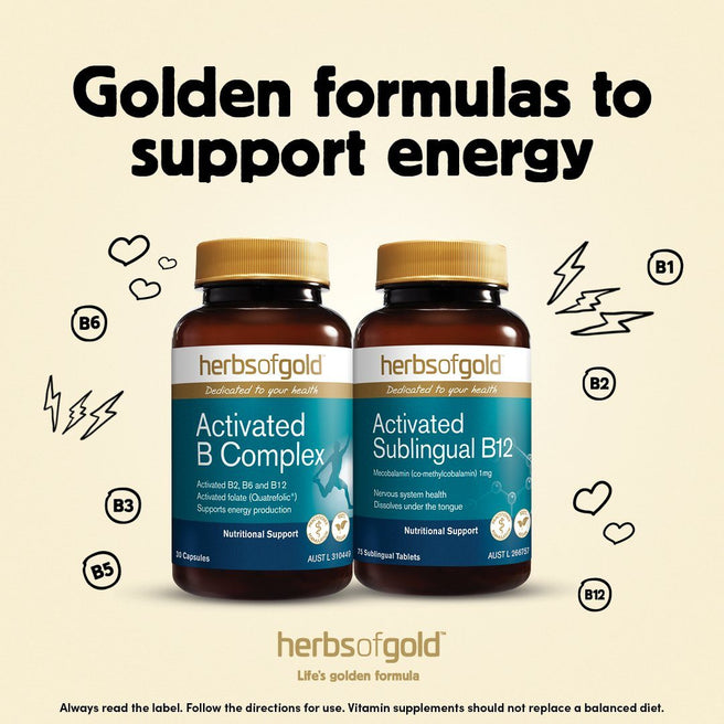 By using an already activated form of a B vitamin, like those contained in Herbs of Gold Activated B Complex, you can bypass these conversion steps, helping you to get the most out of your B vitamin complex. Activated B Complex provides the active form of vitamins B2, B6, B12 as methylcobalamin, as well as activated folate in the form of methylfolate, supporting memory, cognitive function and brain health.